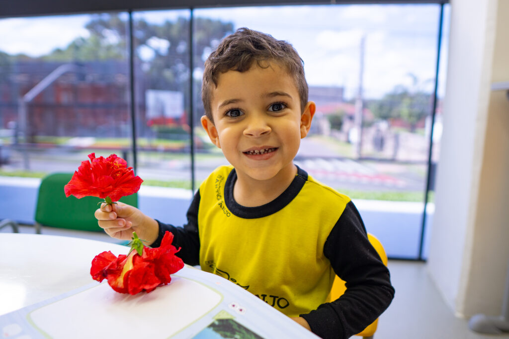 A atividade começou com a observação atenta: cores vibrantes, formatos variados, pétalas macias ou firmes… cada flor trazia uma descoberta diferente. As crianças amassaram as pétalas, sentiram as texturas e perceberam como a natureza libera pigmentos únicos.