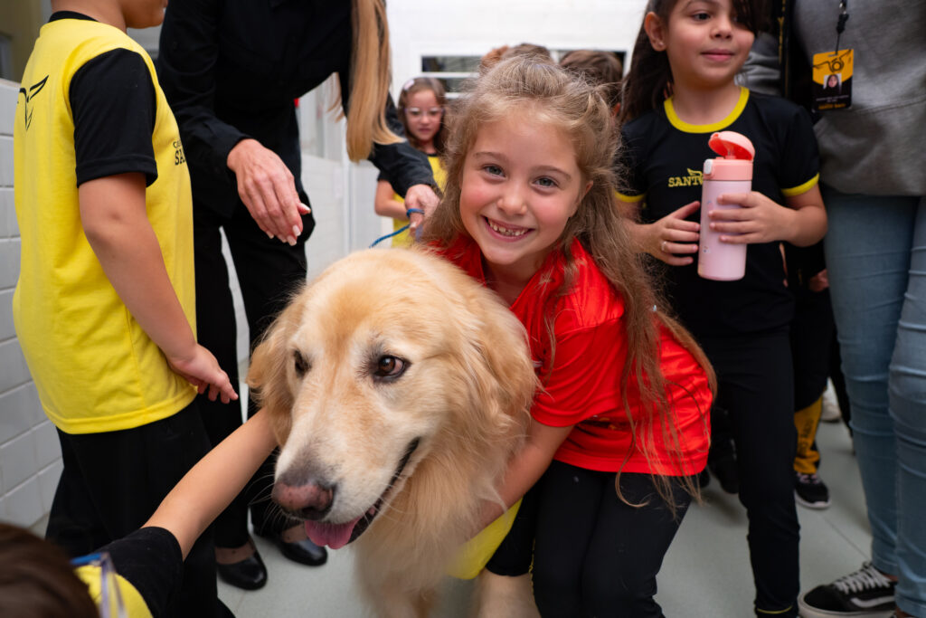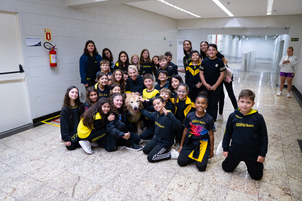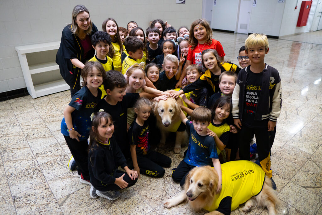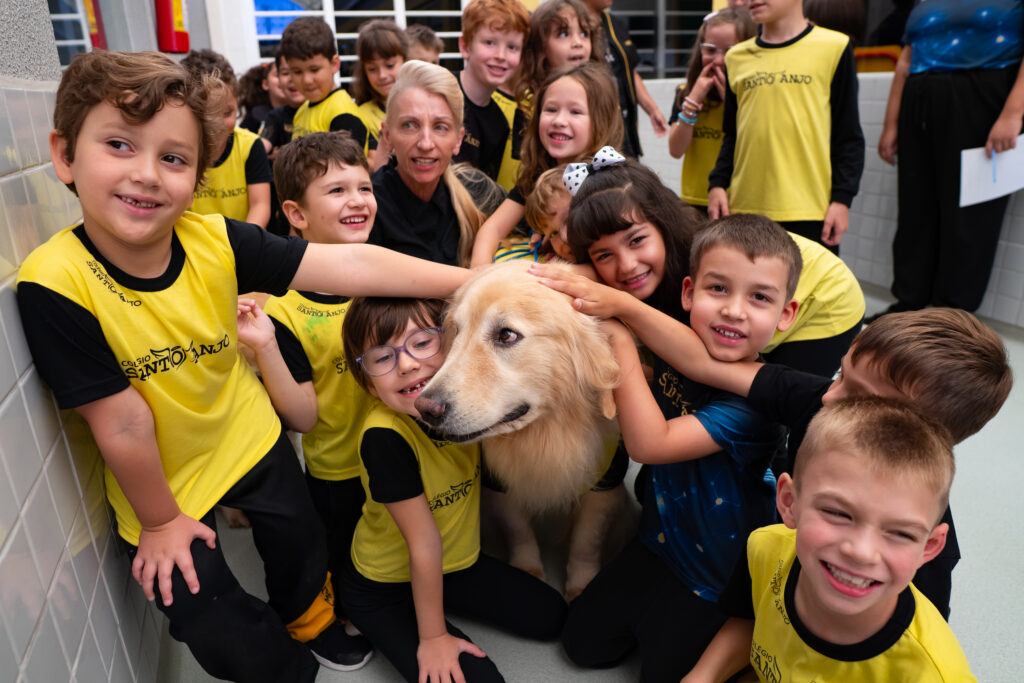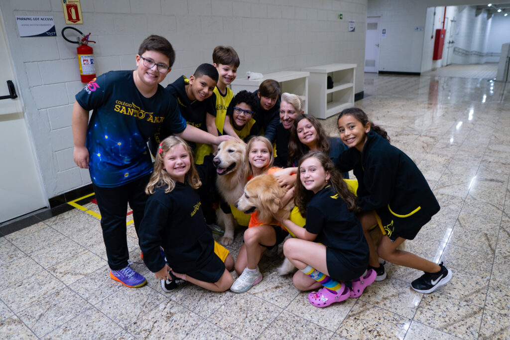 O ano começou com uma visita muito especial no Ensino Fundamental I do Colégio Santo Anjo. O Lenon, nosso mascote do bom comportamento, fez sua primeira participação em 2026 e encantou especialmente os alunos novos, que puderam conhecê-lo de perto pela primeira vez.